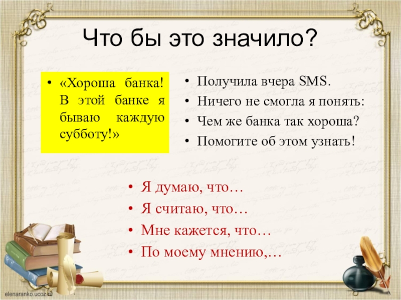 Это сайт презентаций, где можно хранить и обмениваться своими презентациями, докладами, проектами, шаблонами в формате PowerPoint с другими пользователями. Мы помогаем школьникам, студентам, учителям, преподавателям хранить и обмениваться учебными материалами.
