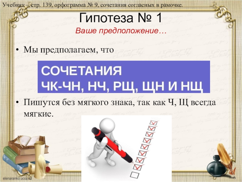 Учебник – стр. 139, орфограмма № 9, сочетания согласных в рамочке.