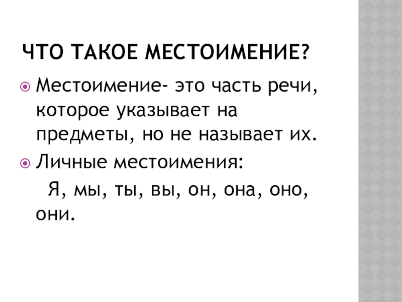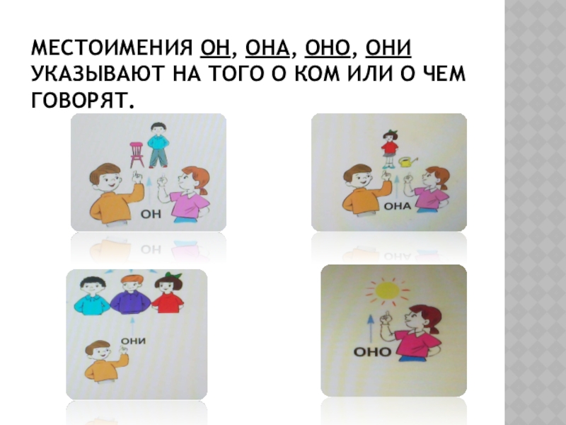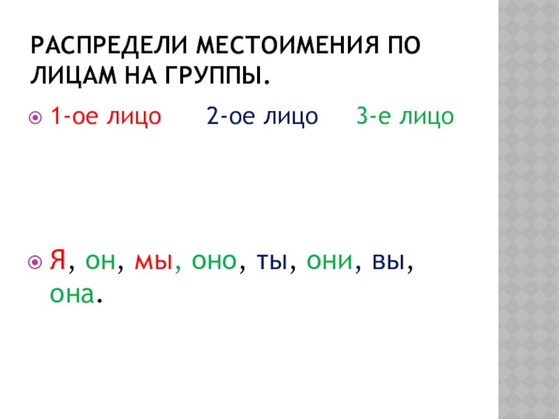Какие слова мы употребляем, чтобы не было повторов? (Я, мы, ты, вы, он, она, оно, они).