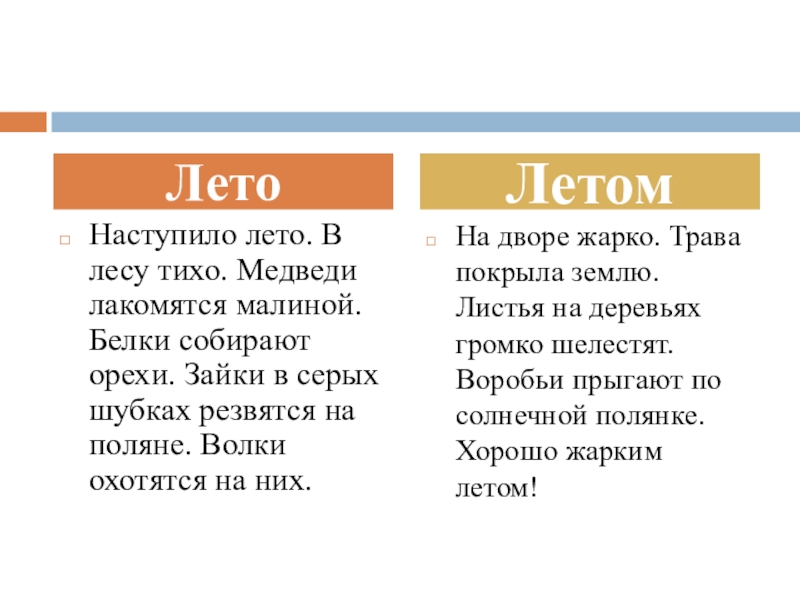 На дворе жарко. Трава покрыла землю. Листья на деревьях громко шелестят. Воробьи прыгают по солнечной полянке. Хорошо жарким летом!