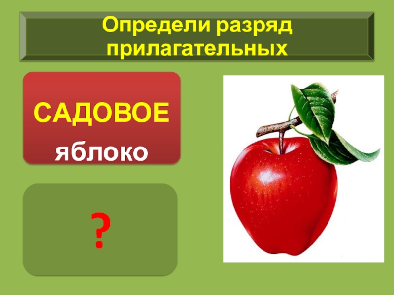 Яблоко из сада – относительное(указывает на место)
