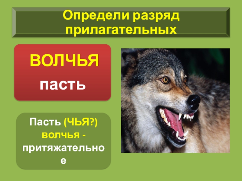 Слайд 28Пасть (ЧЬЯ?) волчья - притяжательное