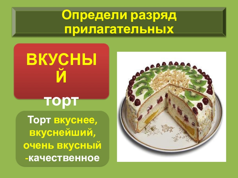 Слайд 26Торт вкуснее, вкуснейший, очень вкусный -качественное