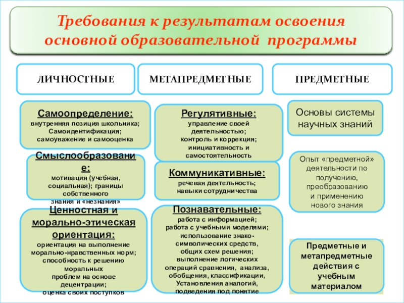 • экологическое сознание, признание высокой ценности жизни во всех её проявлениях; знание основных принципов и правил отношения к природе; знание основ здорового образа жизни и здоровьесберегающих технологий; правил поведения в чрезвычайных ситуациях.