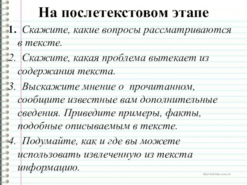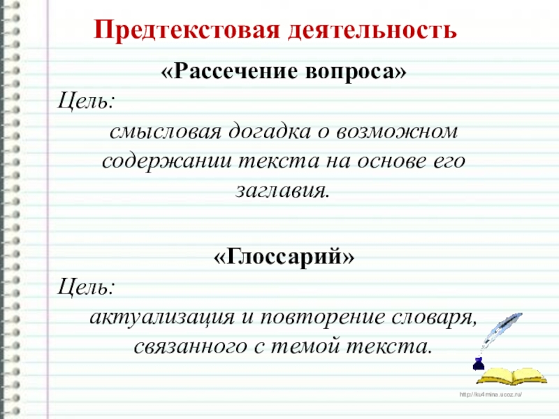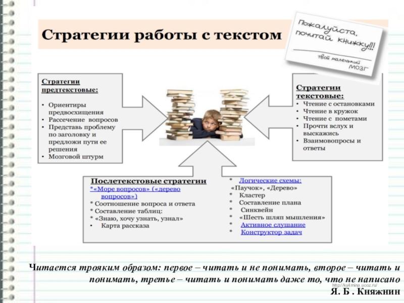 Формирование грамотного читателя должно осуществляться через обучение стратегиям предтекстовой, текстовой и послетекстовой деятельности