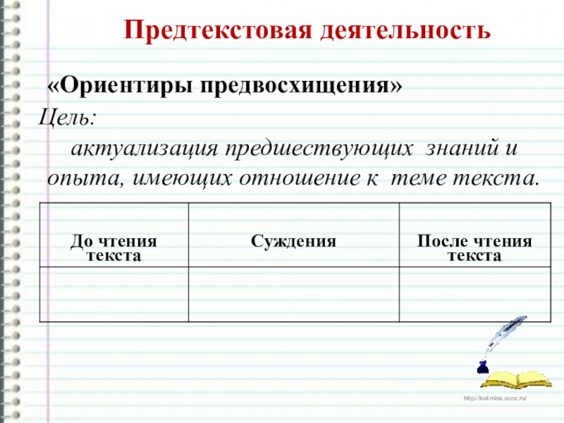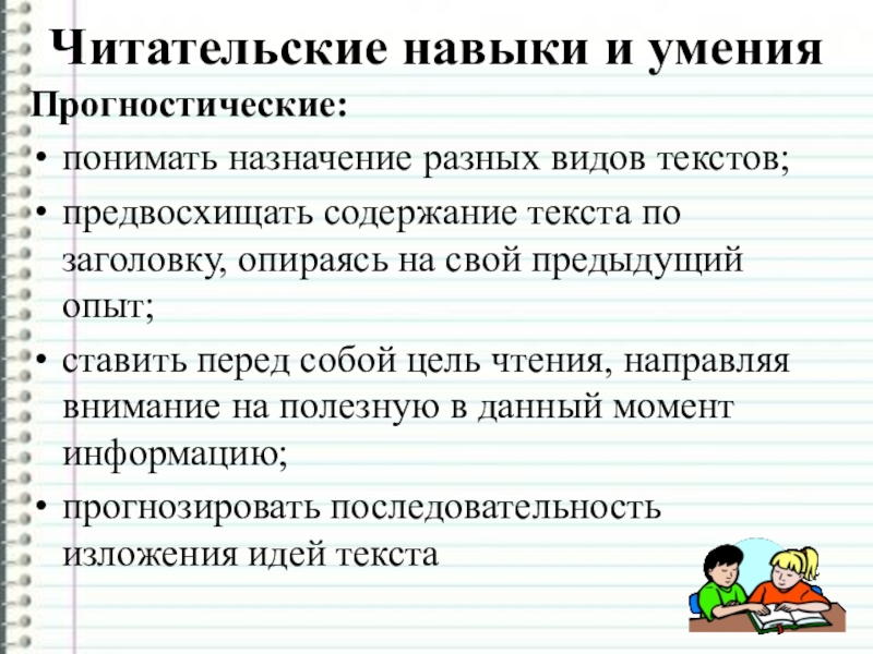 1) предвосхищать содержание предметного плана текста по заголовку;