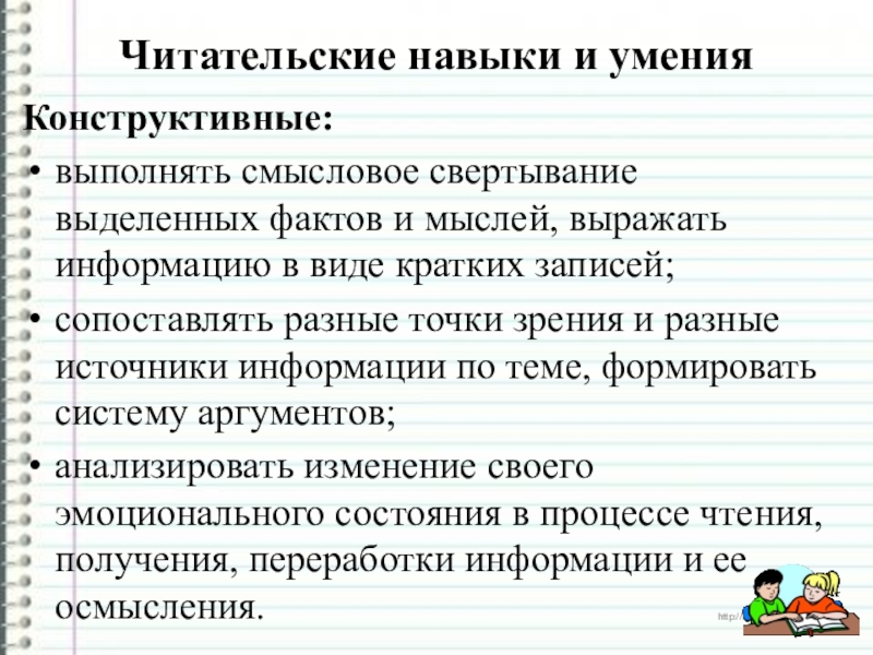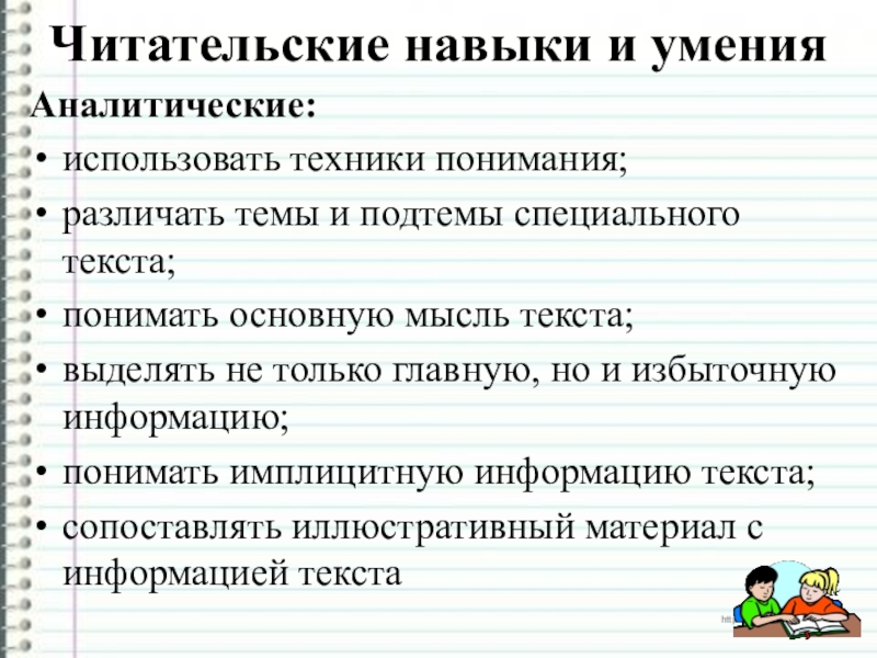 уловить все детали и практически осмыслить извлеченную информацию (внимательное вчитывание и проникновение в смысл с помощью анализа текста)