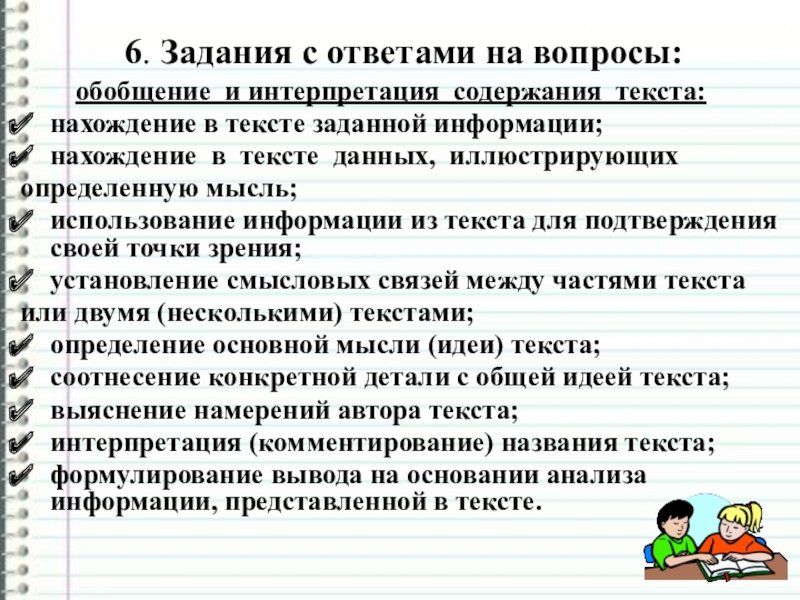 8) понимать невыраженную (подтекстовую) информацию текста;