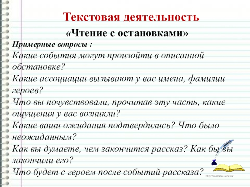 «предугадывание» поведения (поступков) героев текста, последовательности событий;