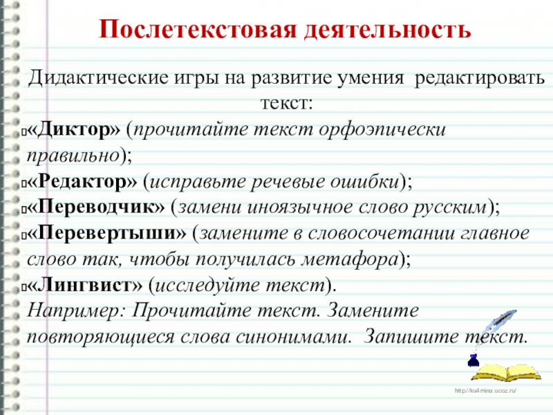 Слайд 30Дидактические игры на развитие умения редактировать текст: