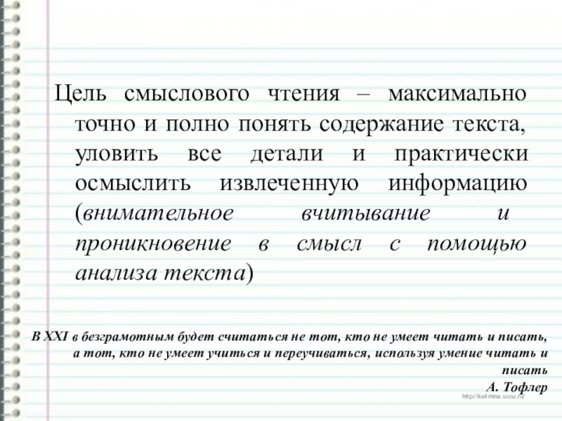 Цель смыслового чтения – максимально точно и полно понять содержание текста,