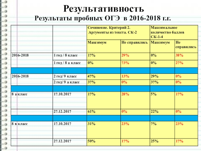Результаты пробных ОГЭ в 2016-2018 г.г.