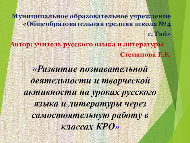 «Развитие познавательной деятельности и творческой активности на уроках русского языка и литературы через самостоятельную работу в классах КРО»