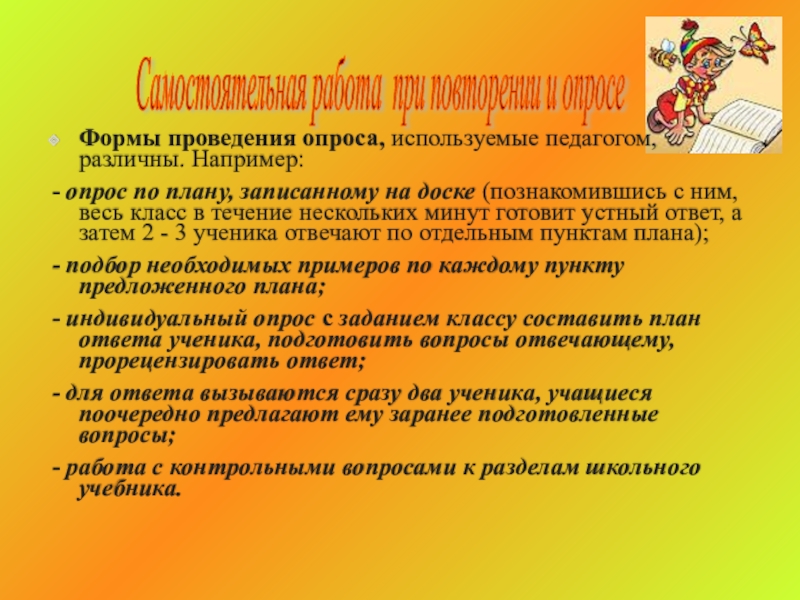 Слайд 15Формы проведения опроса, используемые педагогом, различны. Например: