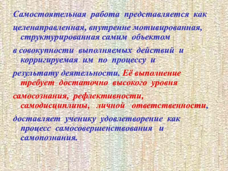 доставляет ученику удовлетворение как процесс самосовершенствования и самопознания.