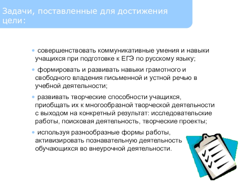 совершенствовать коммуникативные умения и навыки учащихся при подготовке к ЕГЭ по русскому языку;