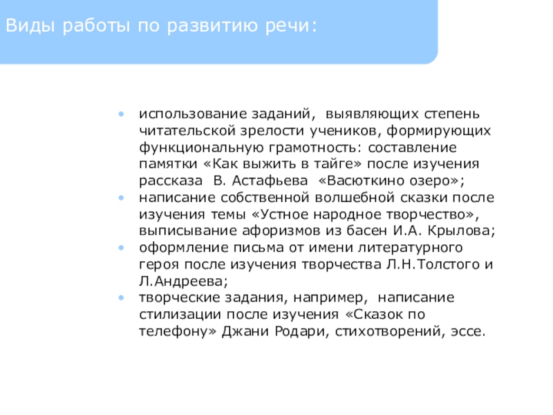 творческие задания, например, написание стилизации после изучения «Сказок по телефону» Джани Родари, стихотворений, эссе.