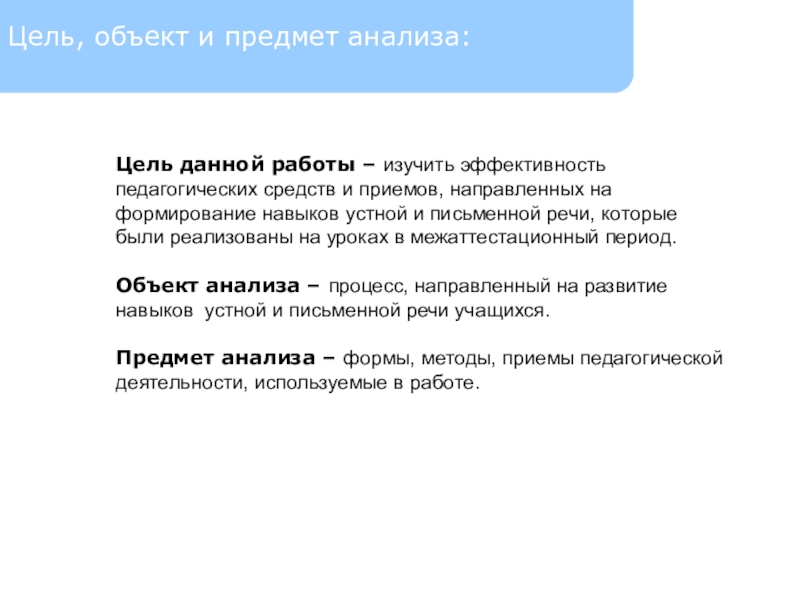 Объект анализа – процесс, направленный на развитие навыков устной и письменной речи учащихся.
