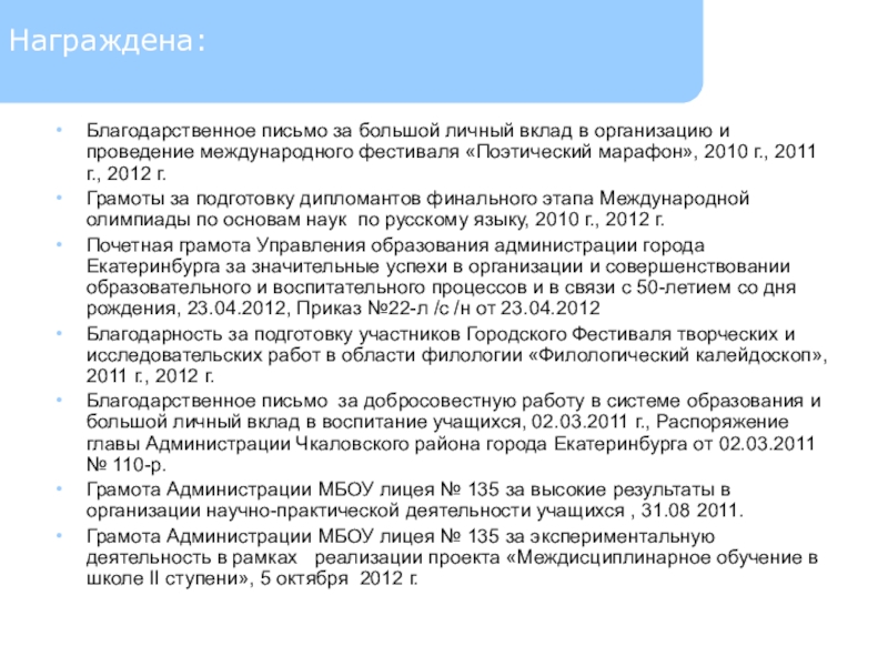 2011-2012 г. Байдурова Е. - 3 место по русскому языку, Шавкунова А. - 3 место по литературе; 1 и 2 место по русскому языку среди 5 классов – Фомина Н., Калинин М.;