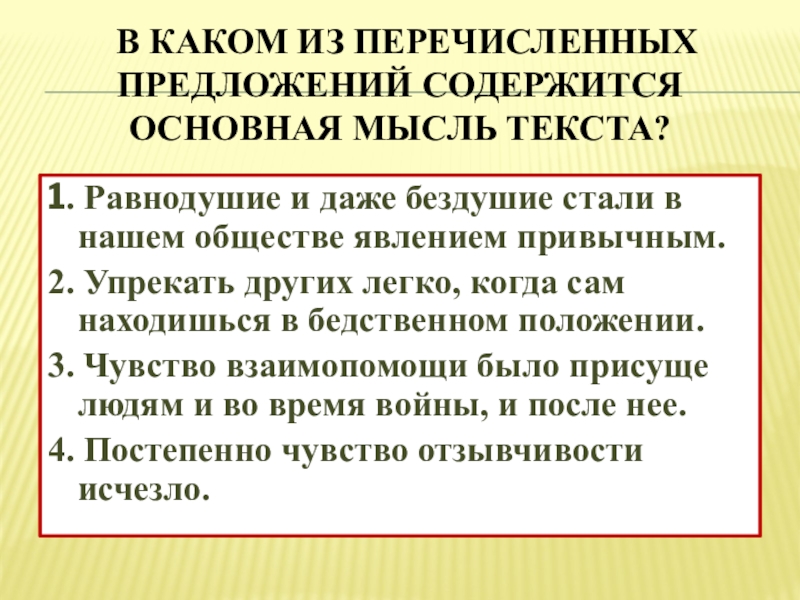 Слайд 6 В каком из перечисленных предложений содержится основная мысль текста?