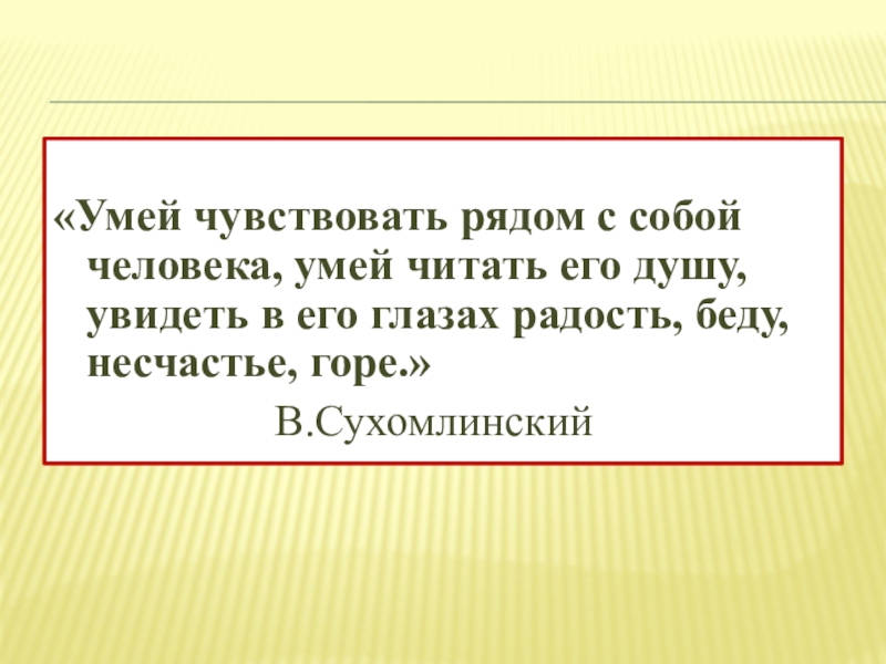«Умей чувствовать рядом с собой человека, умей читать его душу, увидеть