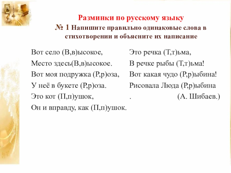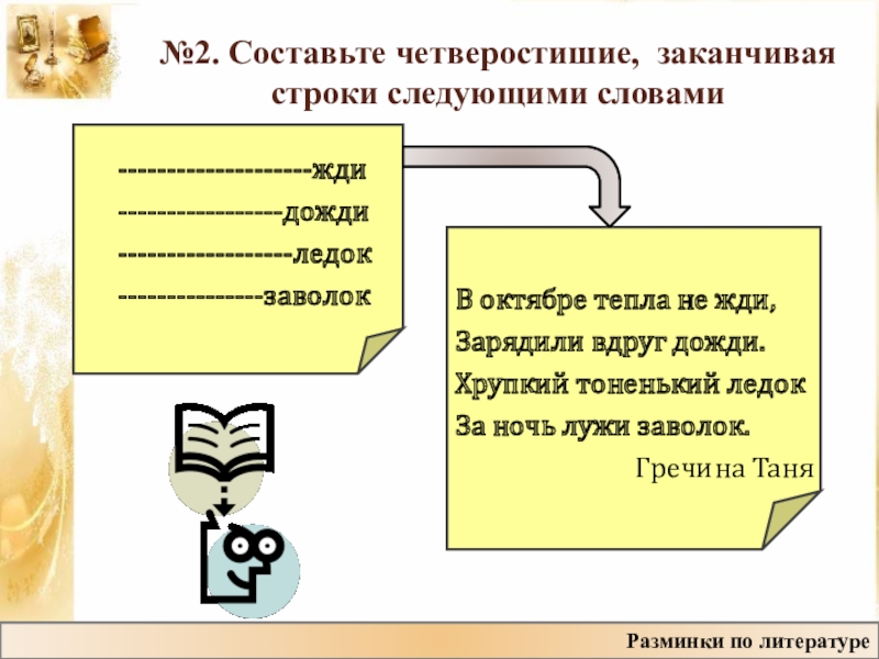 №2. Составьте четверостишие, заканчивая строки следующими словами