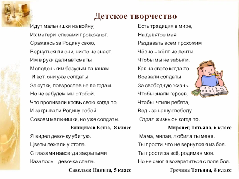 Это сайт презентаций, где можно хранить и обмениваться своими презентациями, докладами, проектами, шаблонами в формате PowerPoint с другими пользователями. Мы помогаем школьникам, студентам, учителям, преподавателям хранить и обмениваться учебными материалами.