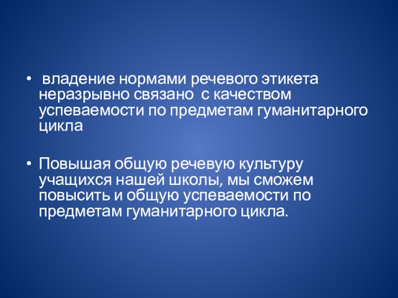 Слайд 19 владение нормами речевого этикета неразрывно связано с качеством успеваемости по