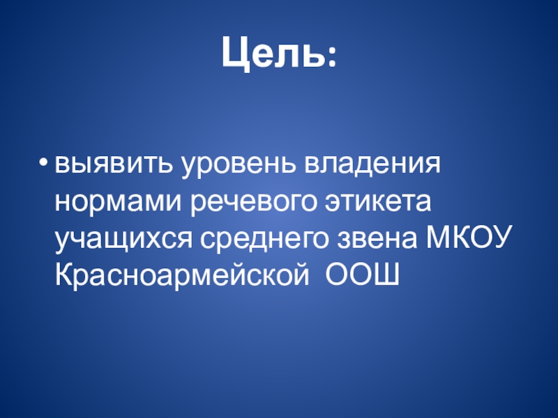 выявить уровень владения нормами речевого этикета учащихся среднего звена МКОУ Красноармейской