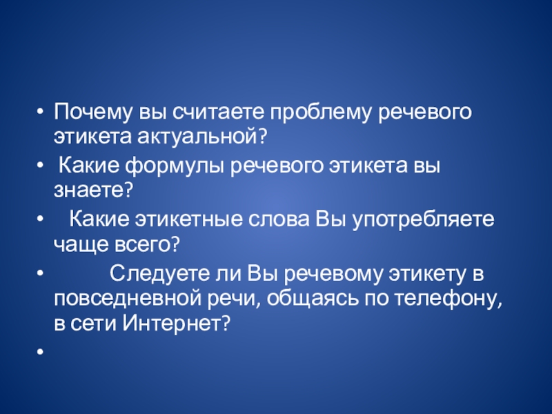 Слайд 12Почему вы считаете проблему речевого этикета актуальной?