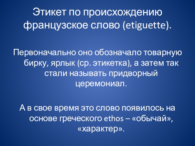 Слайд 7Этикет по происхождению французское слово (etiguette).