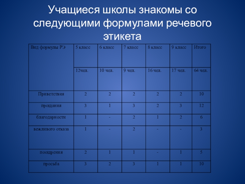 Учащиеся школы знакомы со следующими формулами речевого этикета