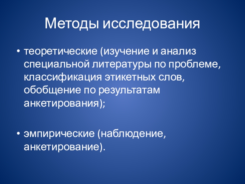 теоретические (изучение и анализ специальной литературы по проблеме, классификация этикетных