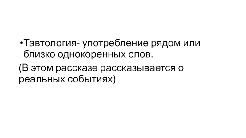 Тавтология- употребление рядом или близко однокоренных слов.(В этом рассказе рассказывается о реальных событиях)