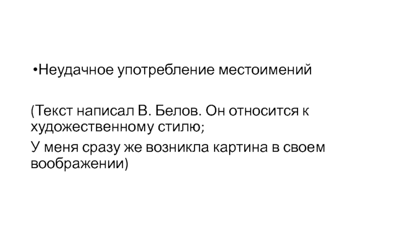 Неудачное употребление местоимений(Текст написал В. Белов. Он относится к художественному стилю; У меня сразу же возникла картина