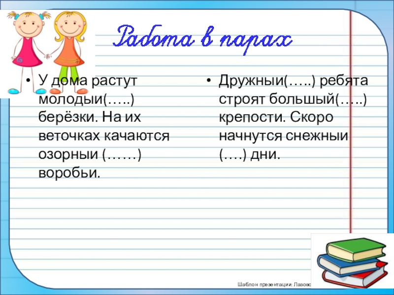 Дружныи(…..) ребята строят большый(…..) крепости. Скоро начнутся снежныи(….) дни.