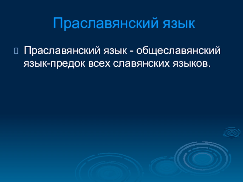Праславянский язык - общеславянский язык-предок всех славянских языков.