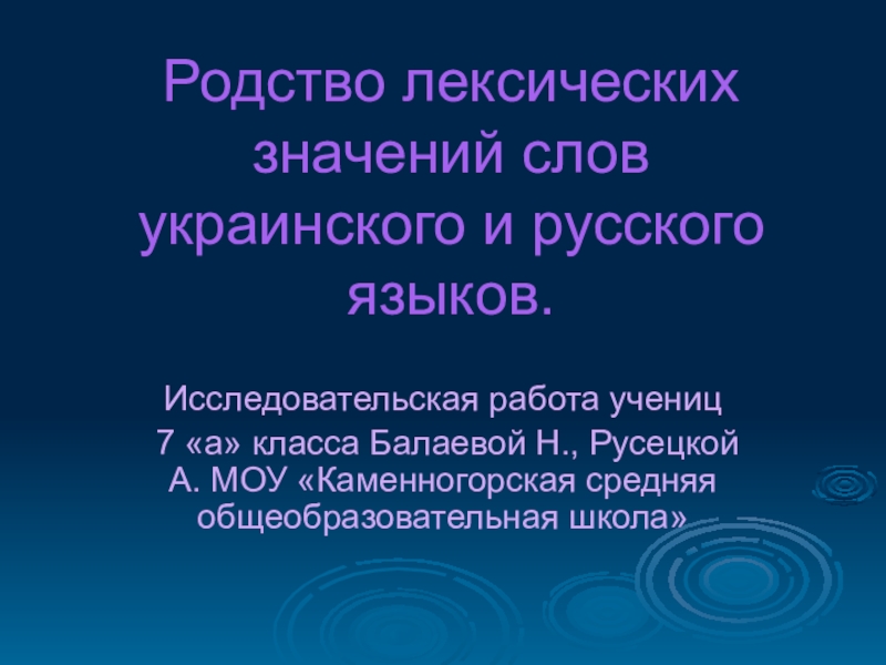 Слайд 1Родство лексических значений слов украинского и русского языков.