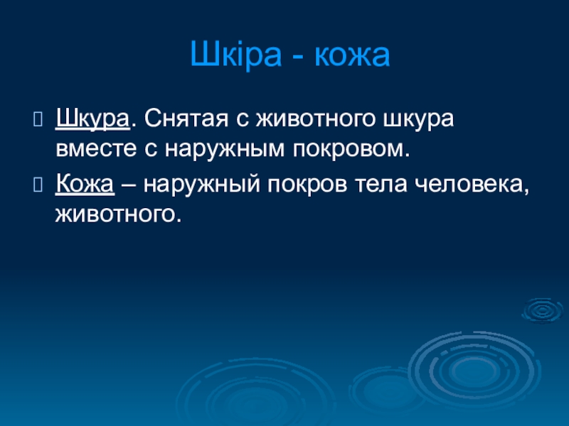 Шкура. Снятая с животного шкура вместе с наружным покровом.
