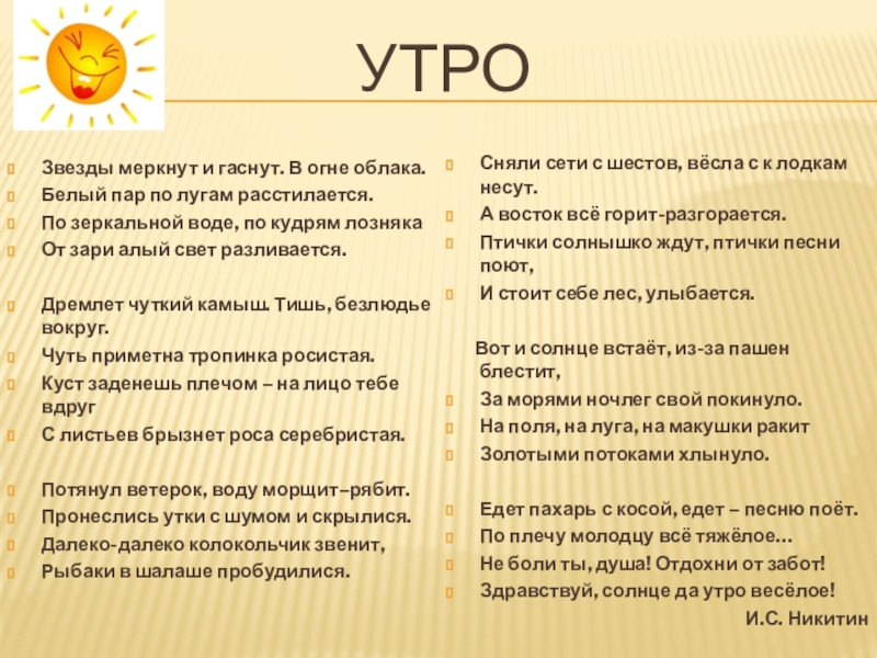 Здравствуй, солнце да утро весёлое!