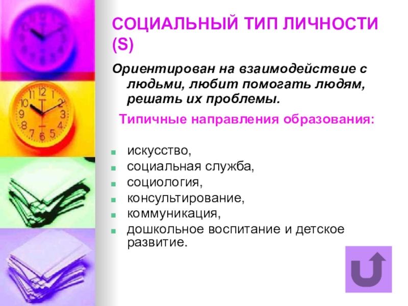 Ориентирован на взаимодействие с людьми, любит помогать людям, решать их проблемы.
