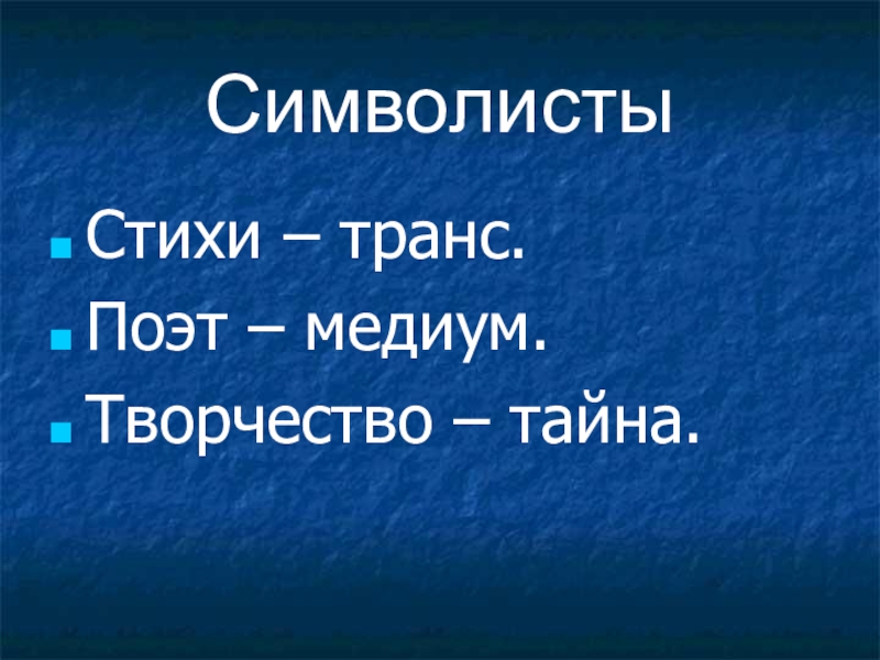 СимволистыСтихи – транс.Поэт – медиум.Творчество – тайна.