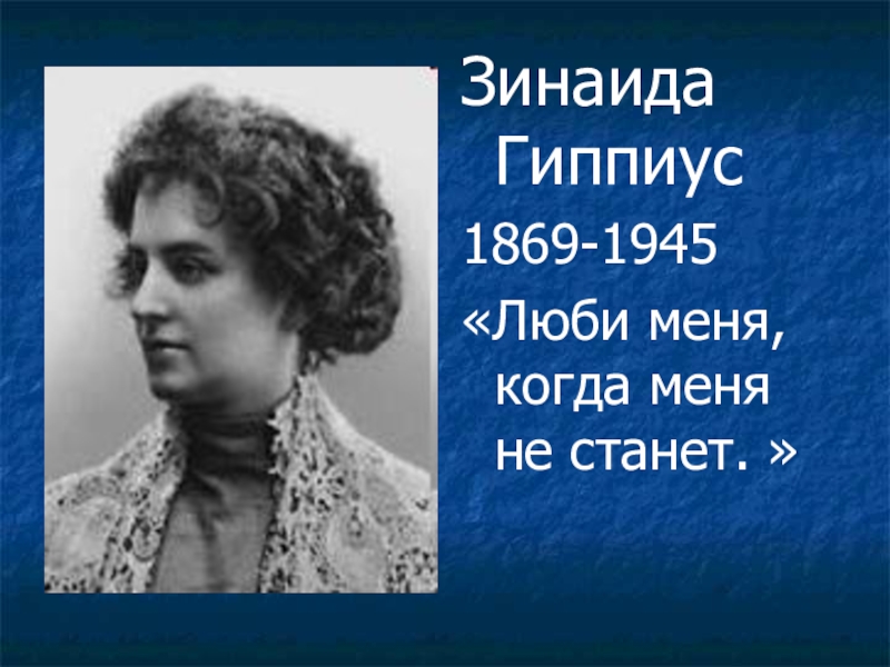 Зинаида Гиппиус1869-1945«Люби меня, когда меня не станет. »