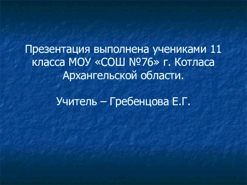 Презентация выполнена учениками 11 класса МОУ «СОШ №76» г. Котласа Архангельской области.  Учитель – Гребенцова Е.Г.