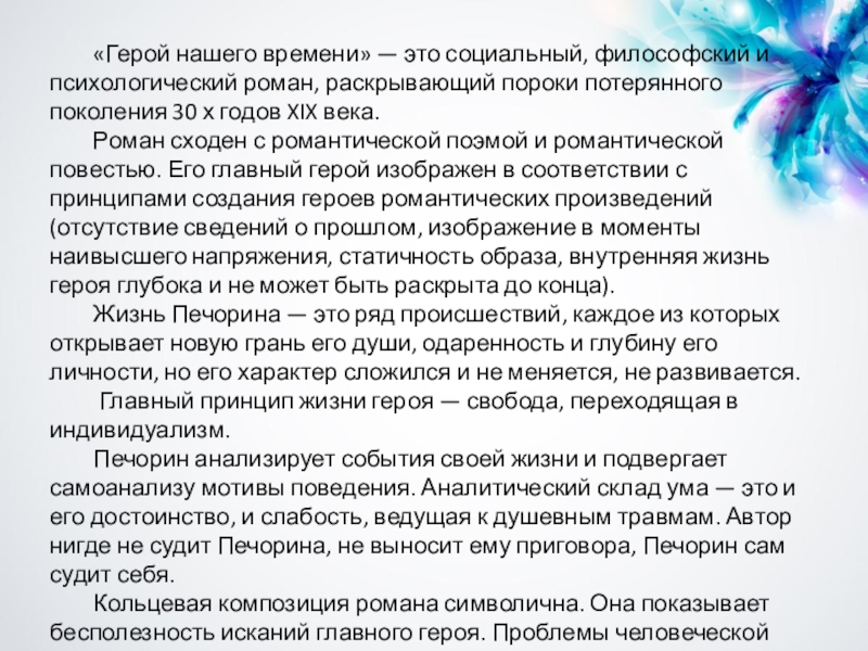 Слайд 12«Герой нашего времени» — это социальный, философский и психологический роман, раскрывающий