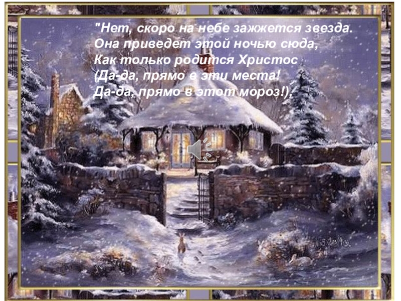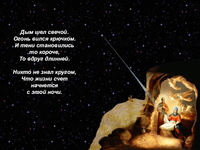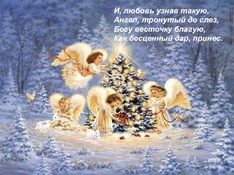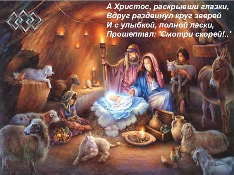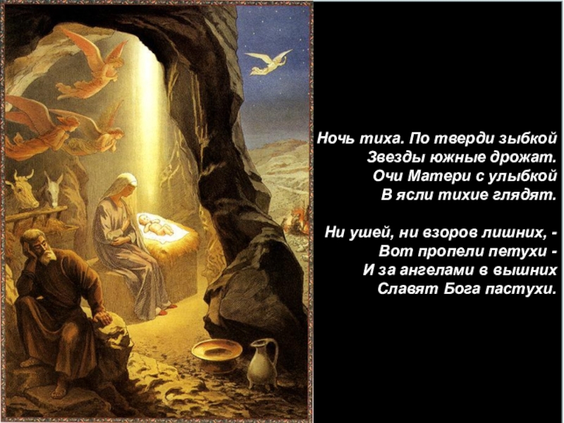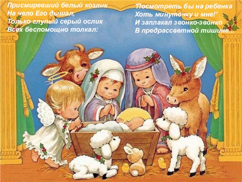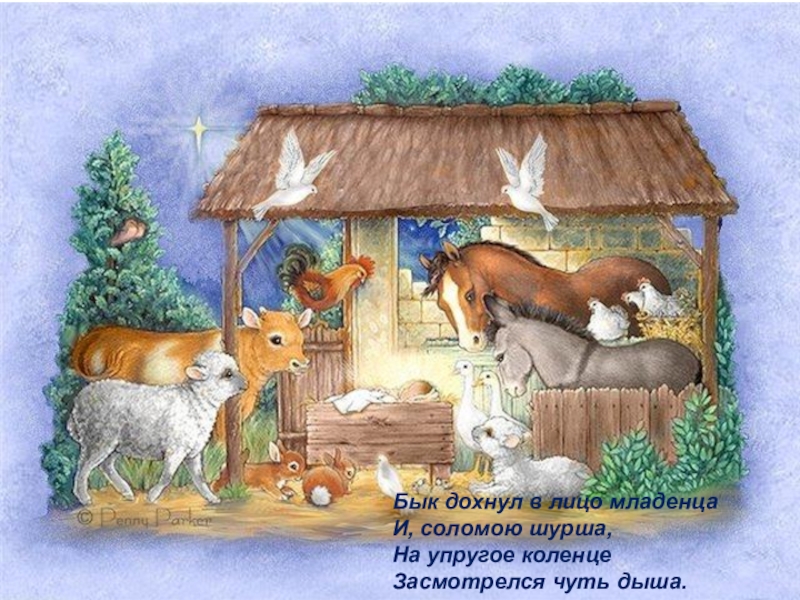 Слайд 57Он спал, весь сияющий, в яслях из дуба,