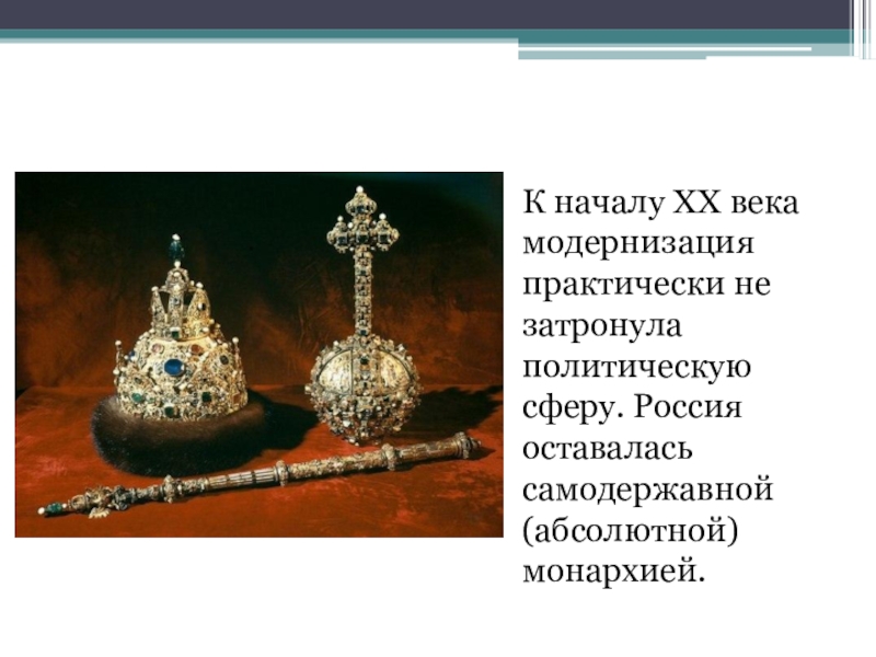К началу XX века модернизация практически не затронула политическую сферу. Россия