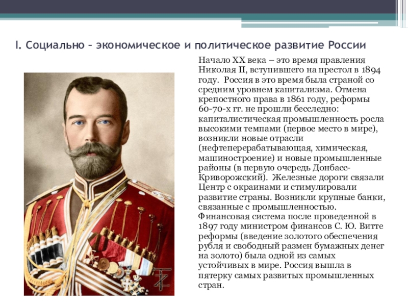 Слайд 5I. Социально – экономическое и политическое развитие России
