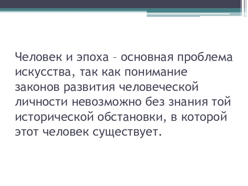 Слайд 4Человек и эпоха – основная проблема искусства, так как понимание законов