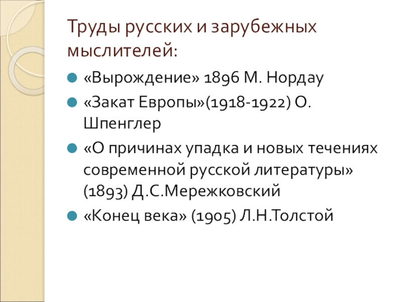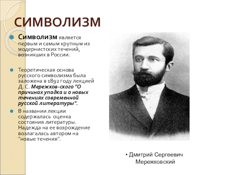 упадка и новых течениях современной русской литературы» (1893) Д.С.Мережковский
